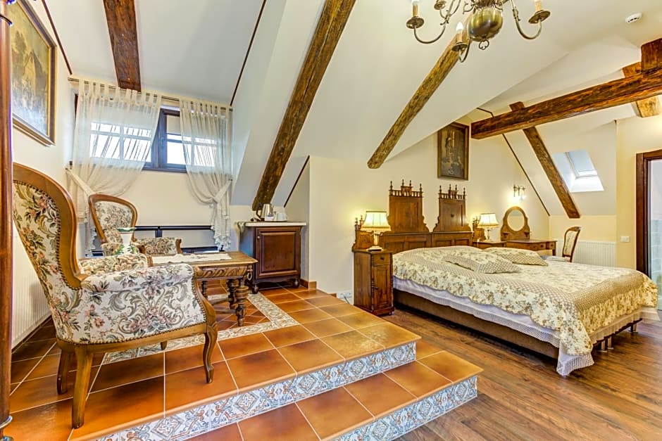This suite has 2 levels, on the ground floor there is a living room with extensible sofa and service bathroom and on the upper floor there is the matrimonial bedroom with private bathroom with shower or spa bath. A tumble dryer, free toiletries, hairdryer and bathrobes are provided.